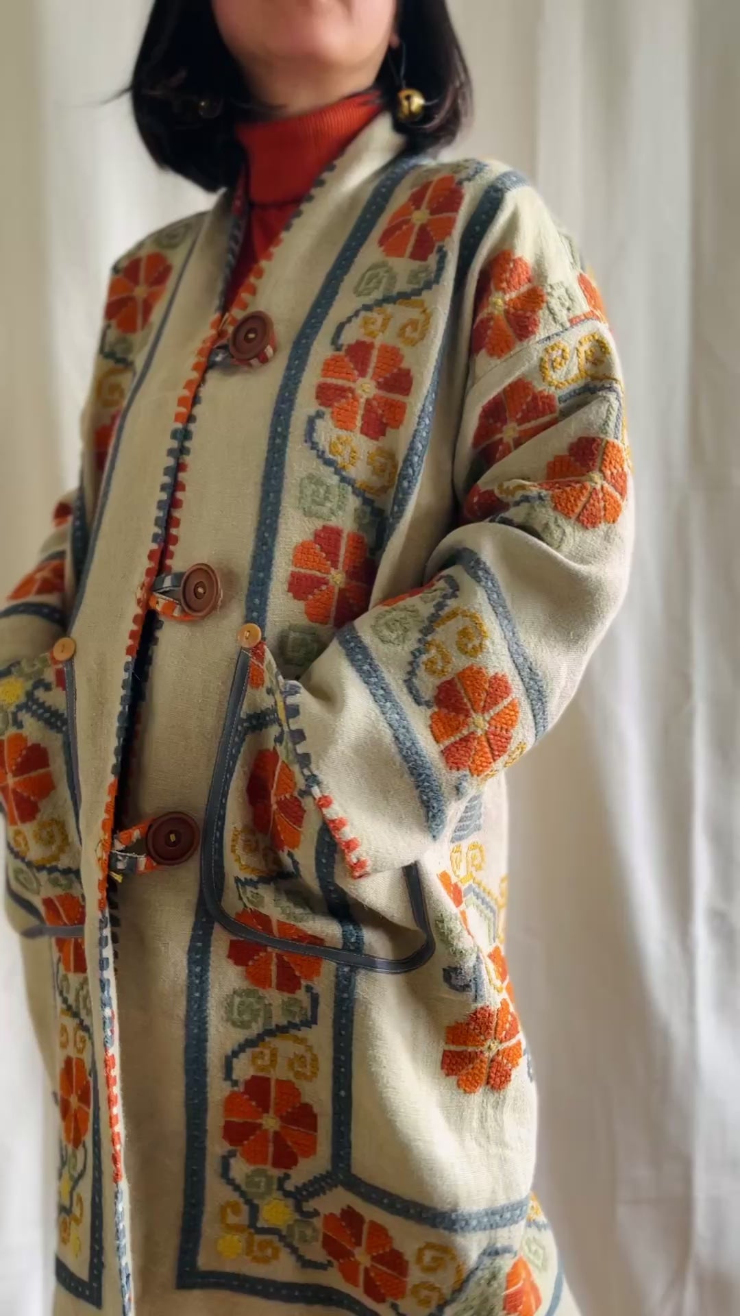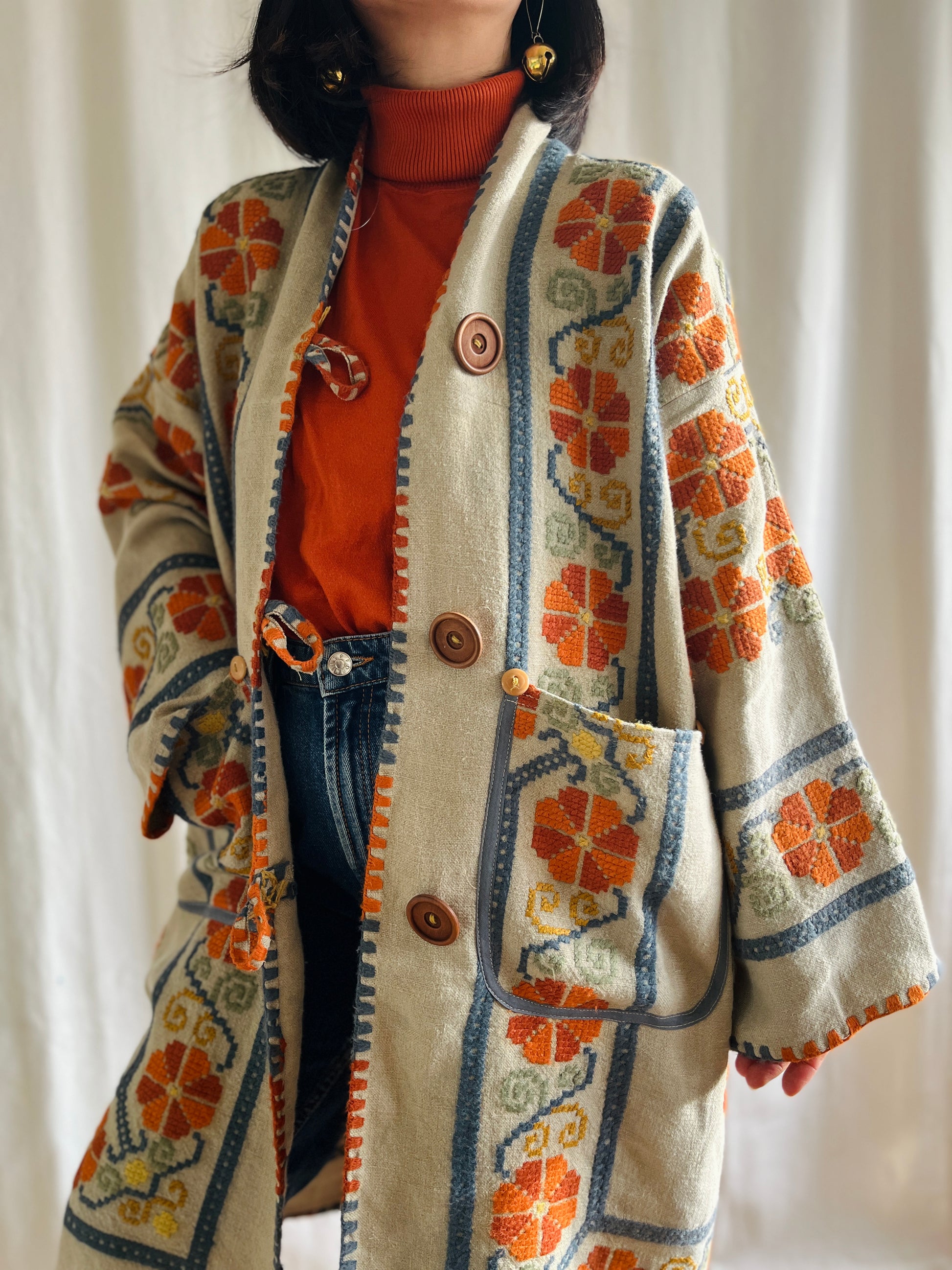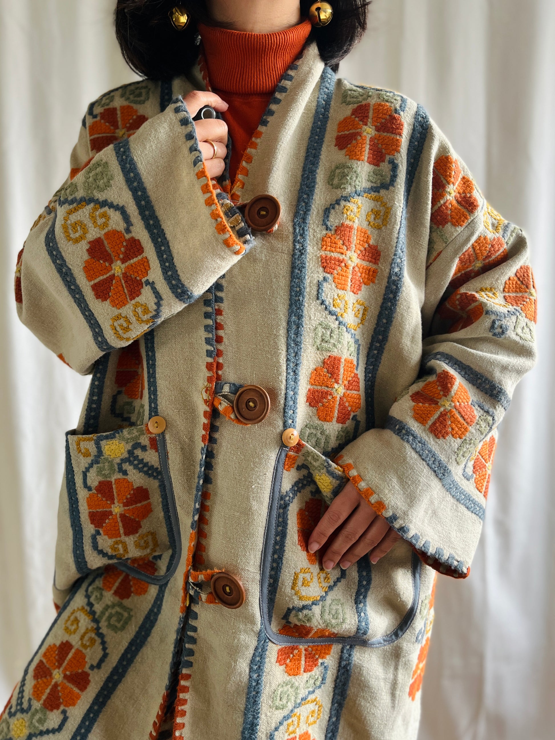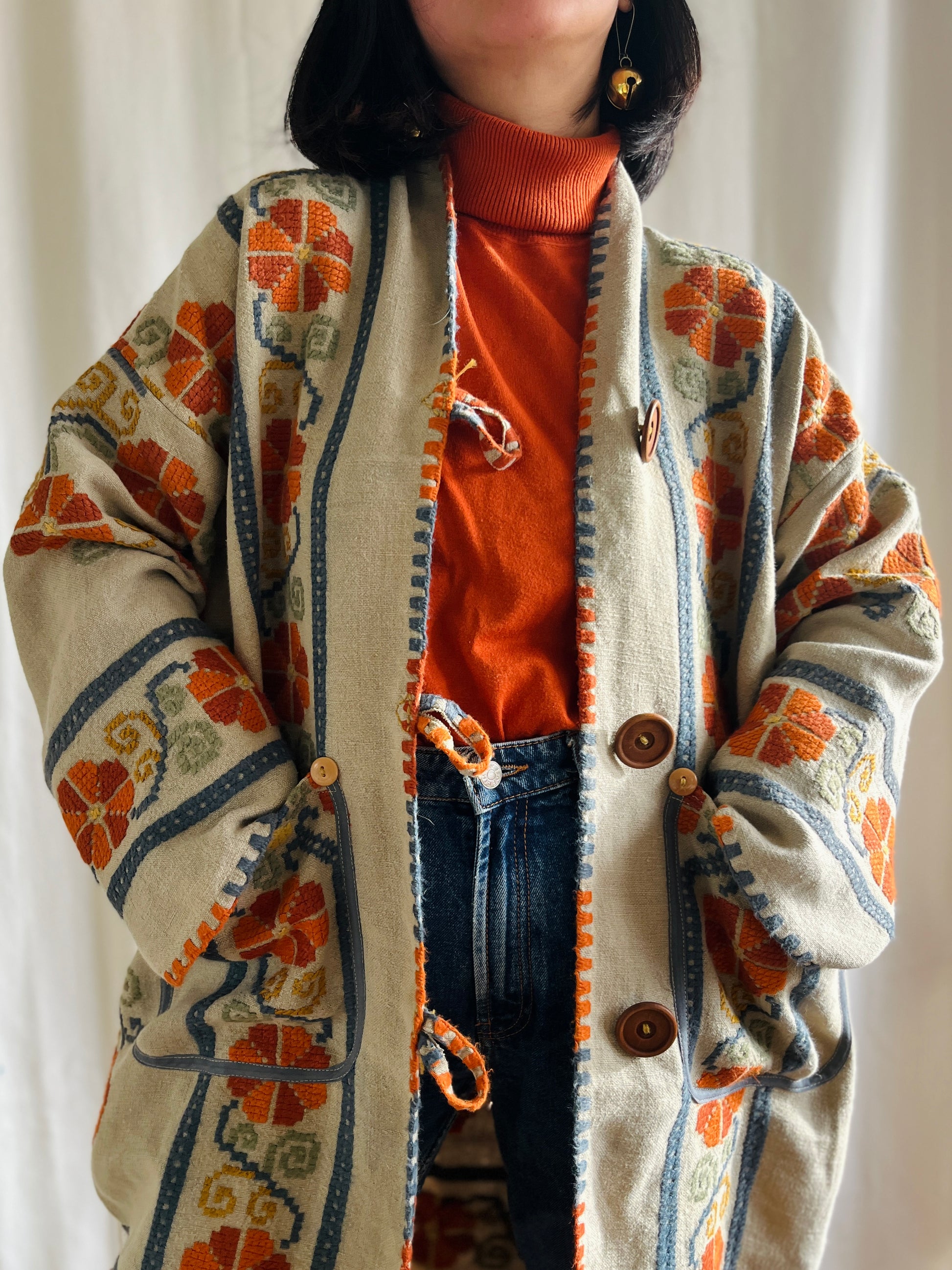 🎴 The witch coat II - Wool and Heavy linen embroidery Kimono