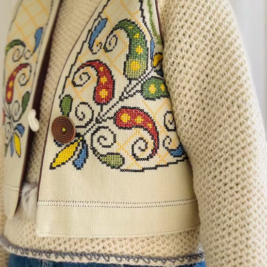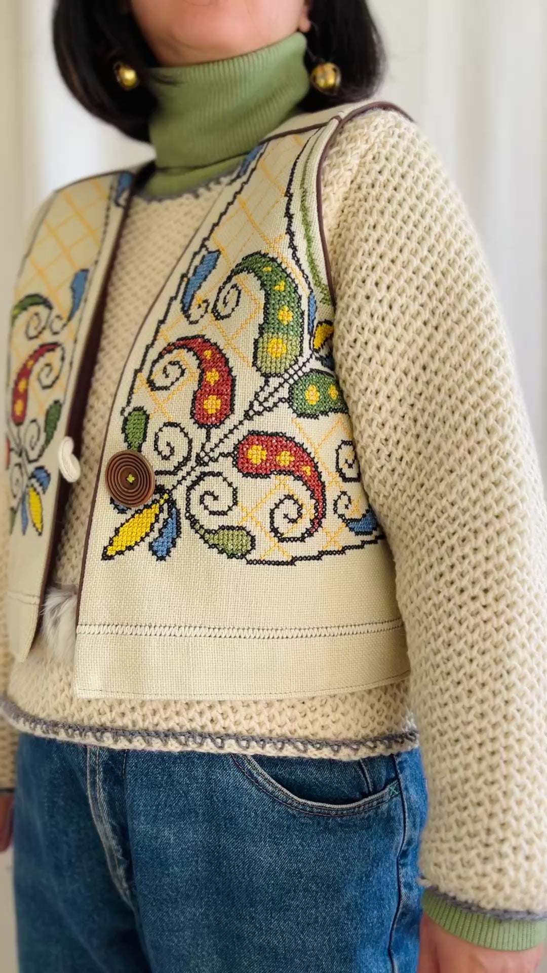 A waistcoat made with the intention for adding colour to your winter knits/ sweater! It has big arm opening, big wood button, lined with linen fabric, with one inner pocket!