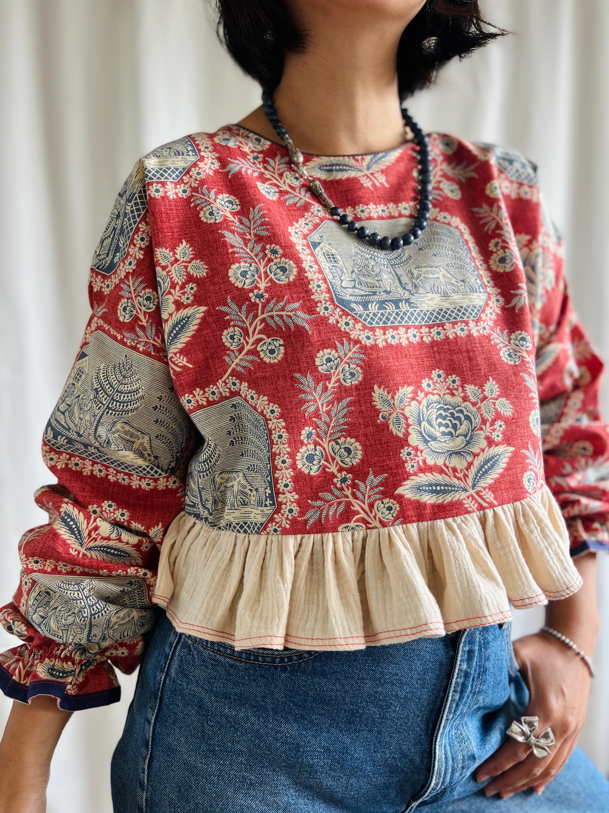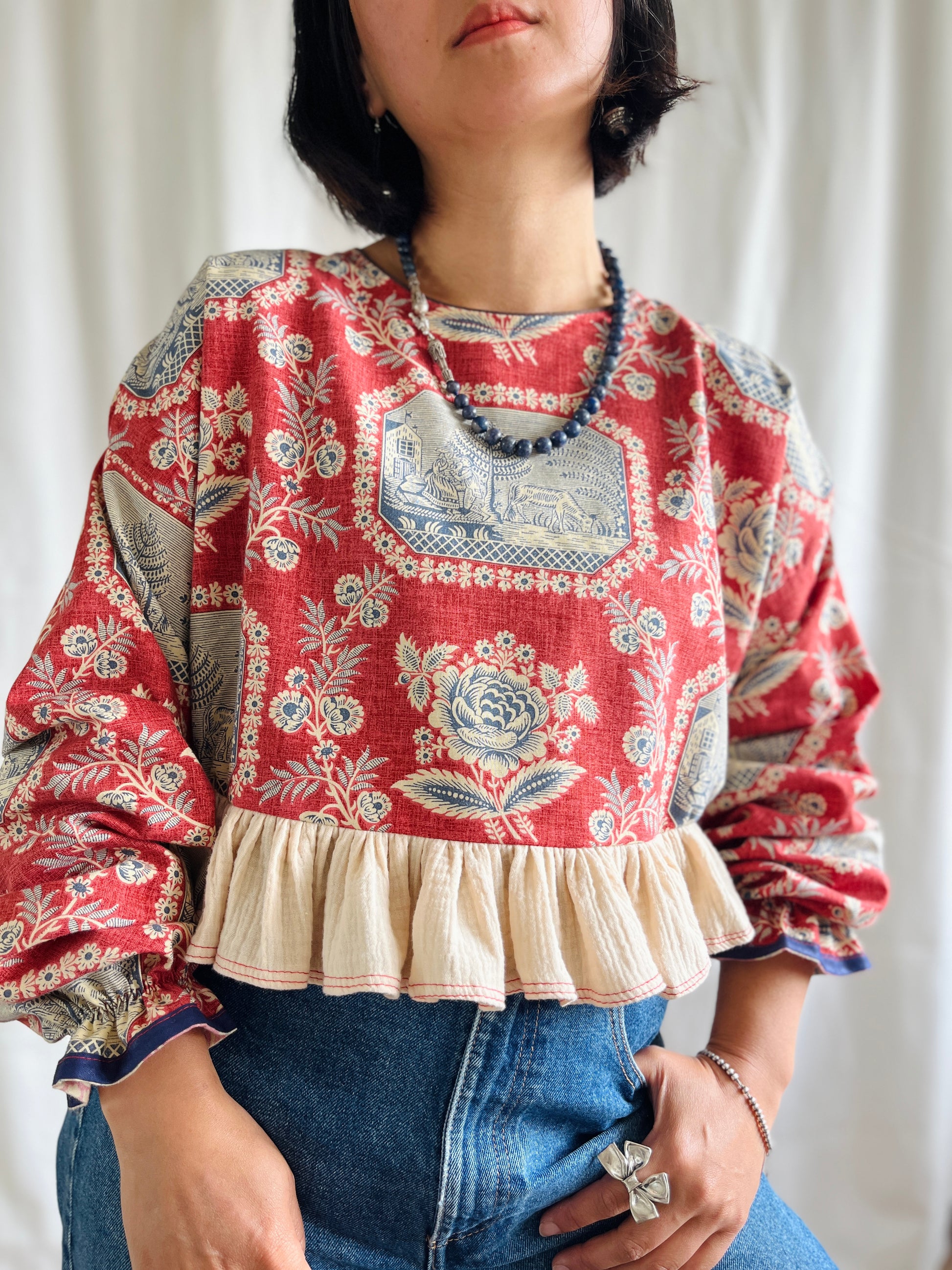Made from an antique fabric roll from France. Pure cotton, older the better.