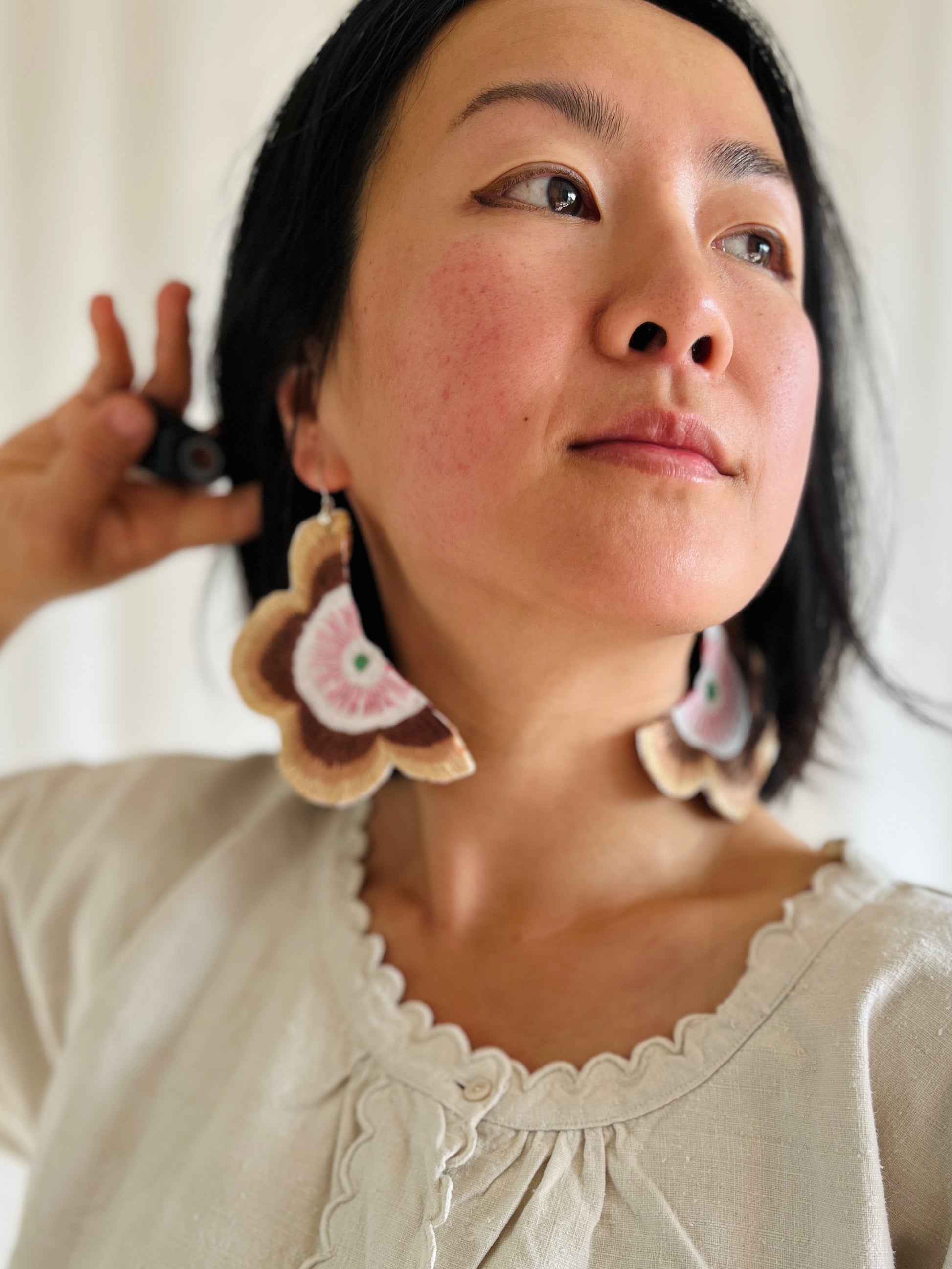 They are lined with scrap fabric of all kind, hand stitch to finish the edge, the earring metal parts are suitable for sensitive skin.